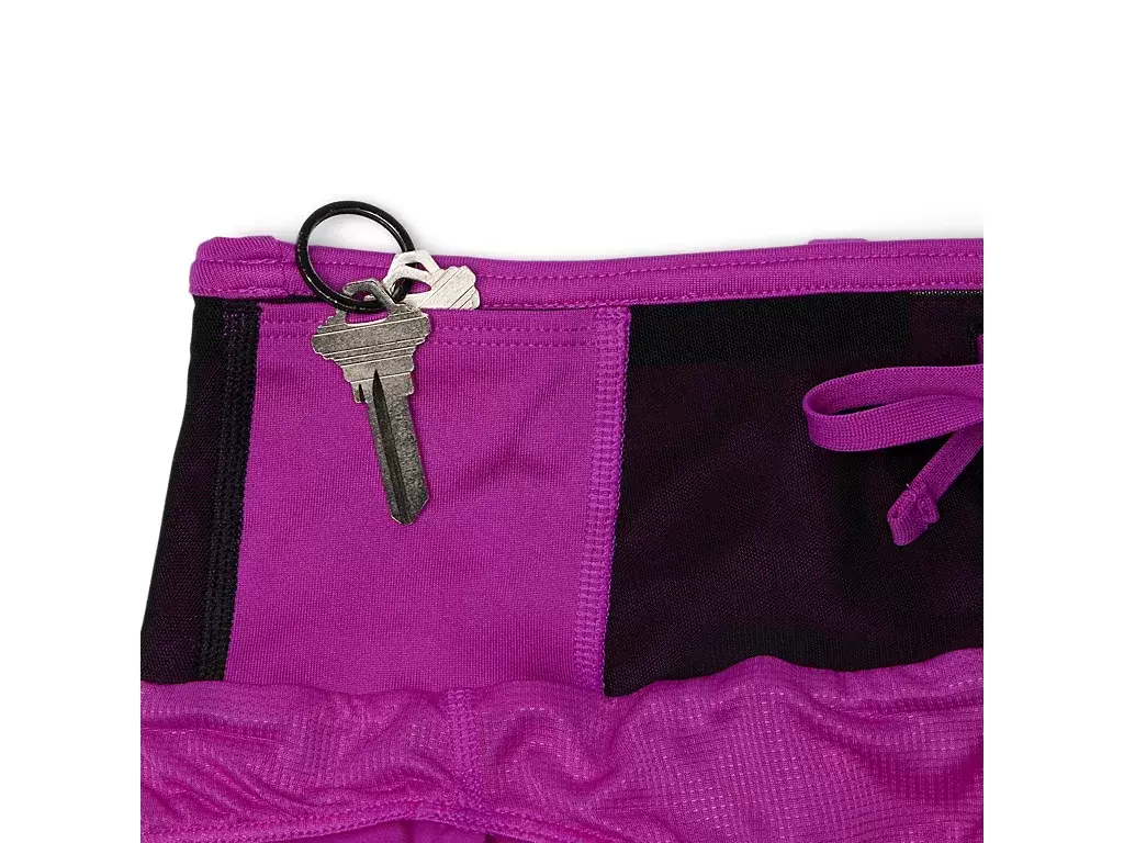 Diese Shorts verfügt über mehrere Taschen, darunter eine zentrale Gesäßtasche zur Aufbewahrung Ihres Telefons und zwei kleinere Vordertaschen. Zusätzlich gibt es ein elastisches Schlaufensystem zum Verstauen einer Jacke, eines T-Shirts, eines Handtuchs oder anderer Laufutensilien.