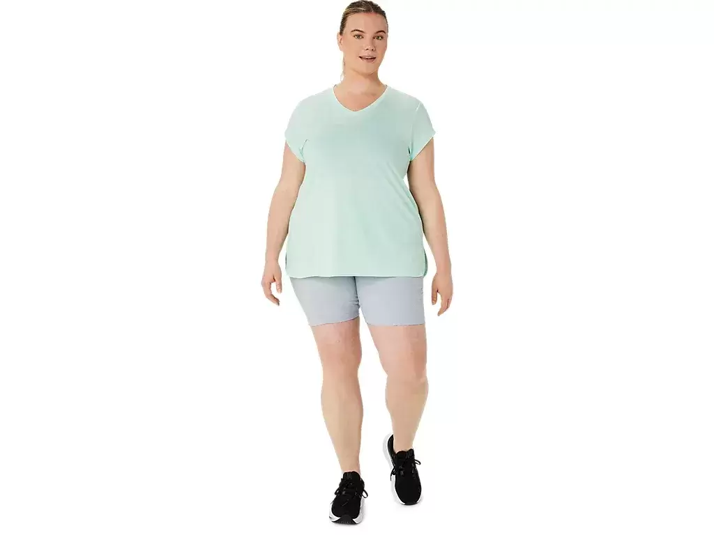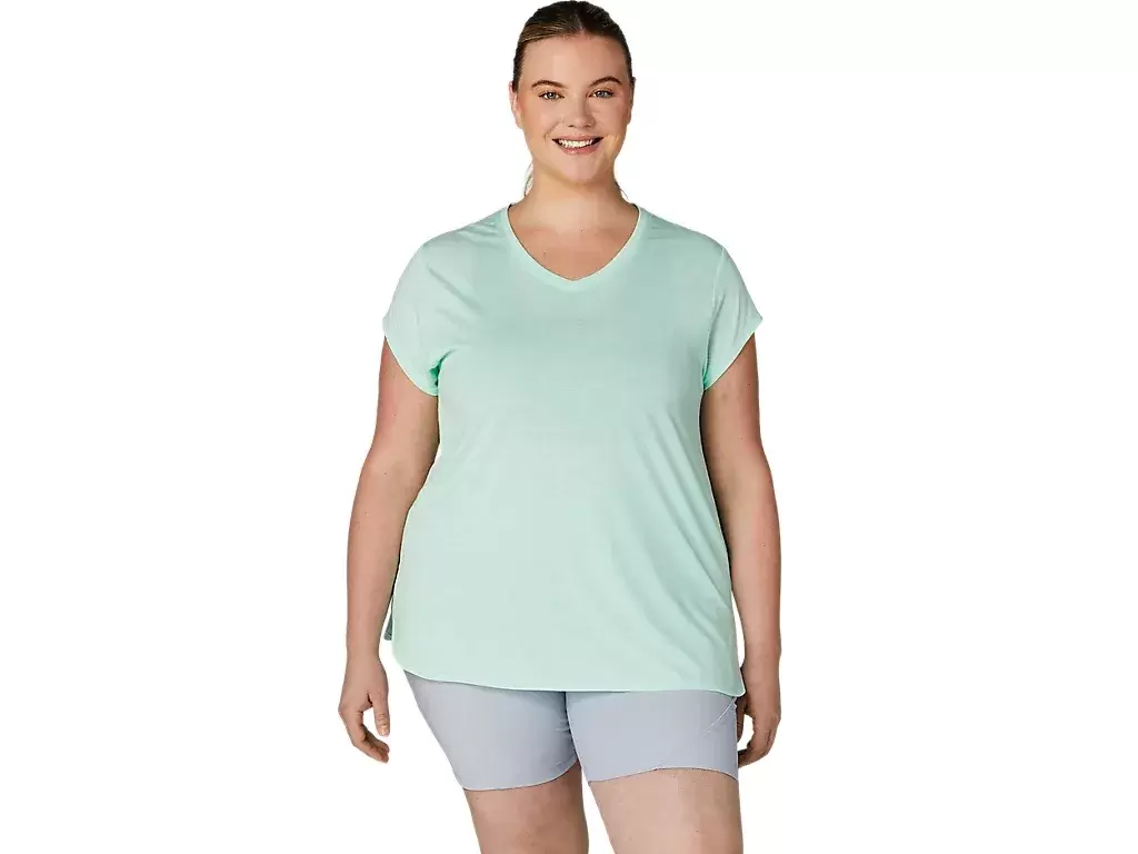 Dieses kurzärmlige Top mit V-Ausschnitt liegt angenehm auf der Haut. Es besteht aus einem bequemen Strickstoff mit nach vorne verlegten Seitennähten für mehr Bewegungsfreiheit.
