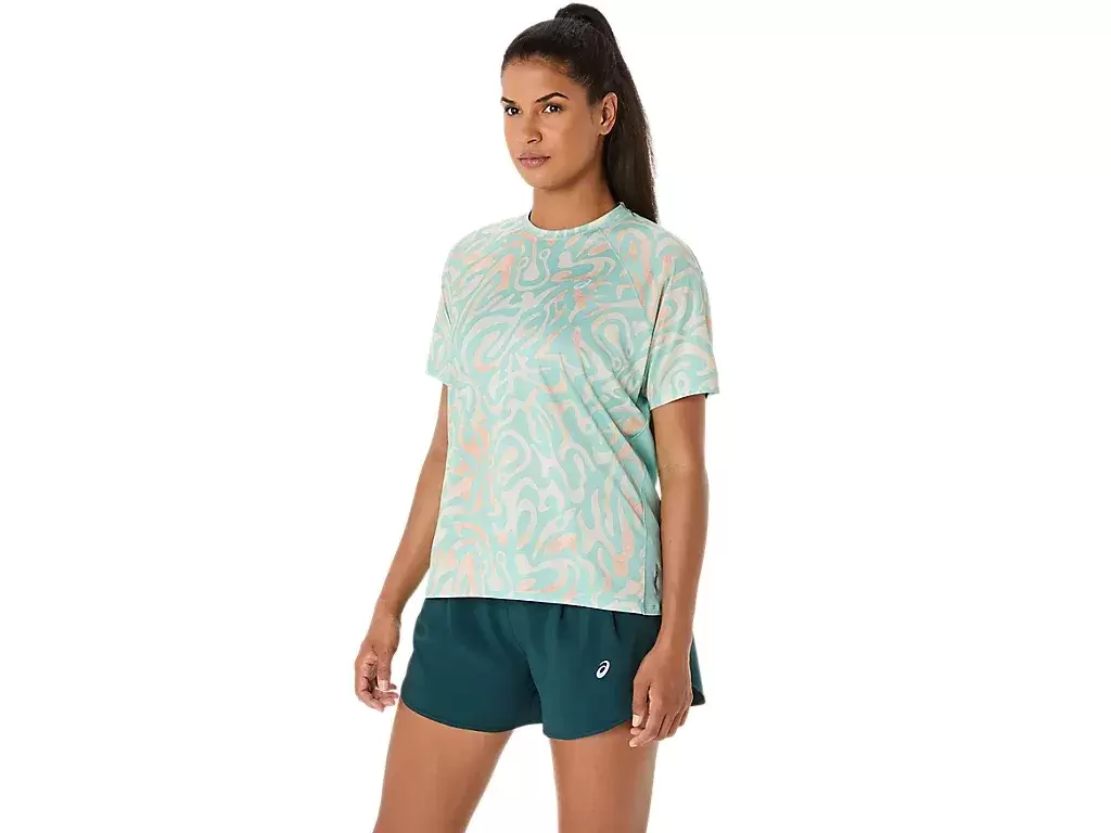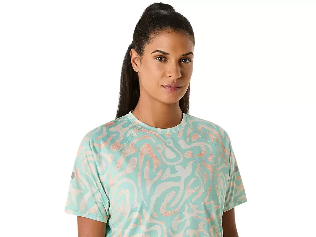 Bringen Sie Ihren Lauf mit Power durch mit dem LITE-SHOW™ KURZARM-TOP mit Allover-Print.