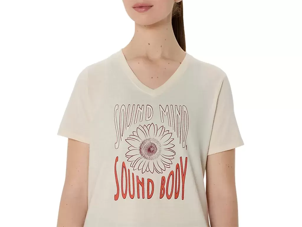 Dieses kurzärmelige Top mit V-Ausschnitt ist so konzipiert, dass es sich glatt auf der Haut anfühlt