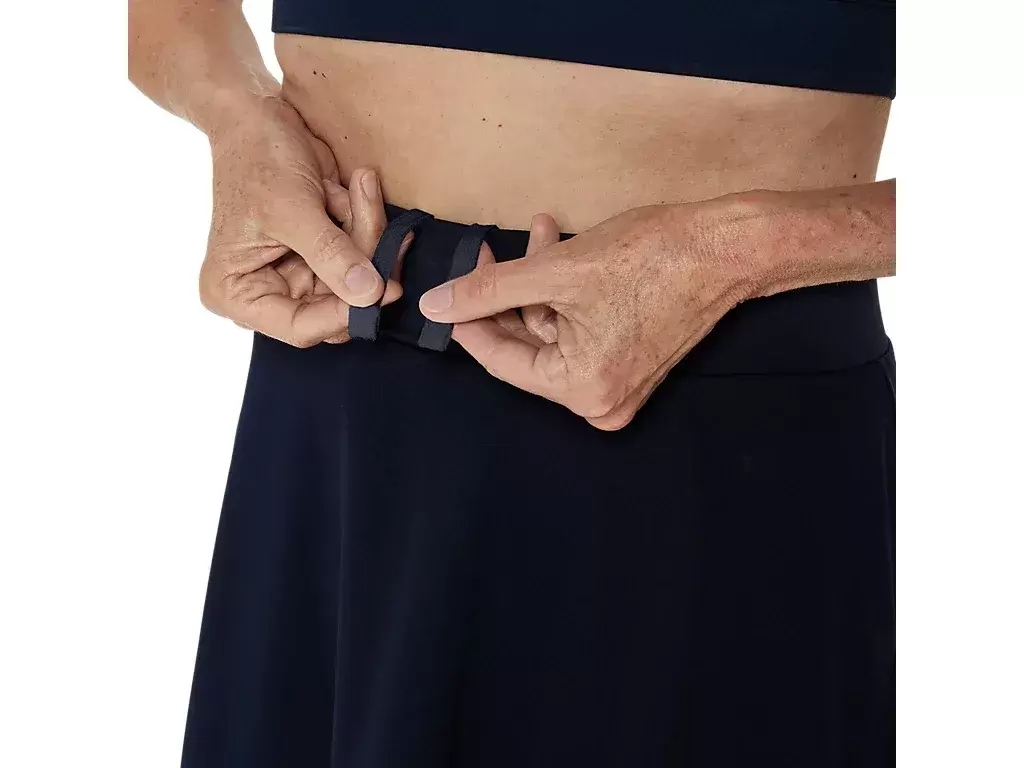 Der Skort verfügt außerdem über einen Kordelzug in der Taille, der die Anpassung erleichtert, während die Seitenschlitze Bewegungsfreiheit ermöglichen.