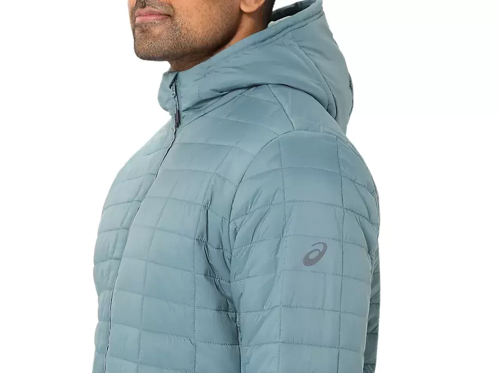 Reflektierendes ASICS-Logo auf der linken Schulter des Trägers