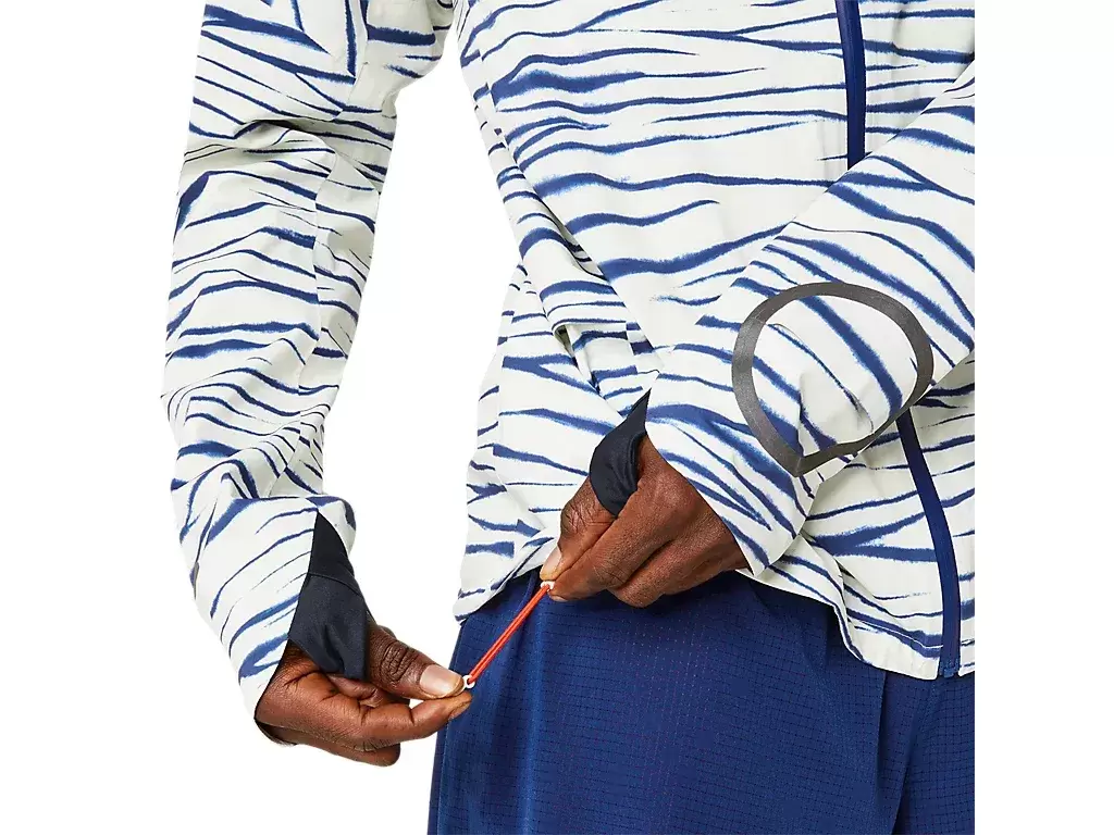 Die wasserdichte METARUN™ SHIBORI Jacke ist eine der fortschrittlichsten Jacken der ASICS-Laufkollektion. Sie ist funktional, wenn Sie bei jedem Wetter laufen, und lässt sich während des Laufs leicht ausziehen und in der Brusttasche verstauen. Die Jacke zeigt eine Grafik, die von Shibori, einer traditionellen japanischen Färbetechnik, inspiriert ist. Diese Jacke ist vollständig wasserdicht, leicht und atmungsaktiv. Die Jacke verfügt über Daumenlöcher und eine verstellbare Kapuze mit integriertem Schirm. Das ergonomische Design und die überschnittenen Schultern verbessern die Bewegungsfreiheit. Am Saum befindet sich außerdem ein Kordelzug zur Passformverstellung, der dafür sorgt, dass die Jacke bei Bewegung nicht verrutscht. Mindestens 50 % des Hauptmaterials des Kleidungsstücks bestehen aus recyceltem Polyester, um Abfall und CO2-Emissionen zu reduzieren.