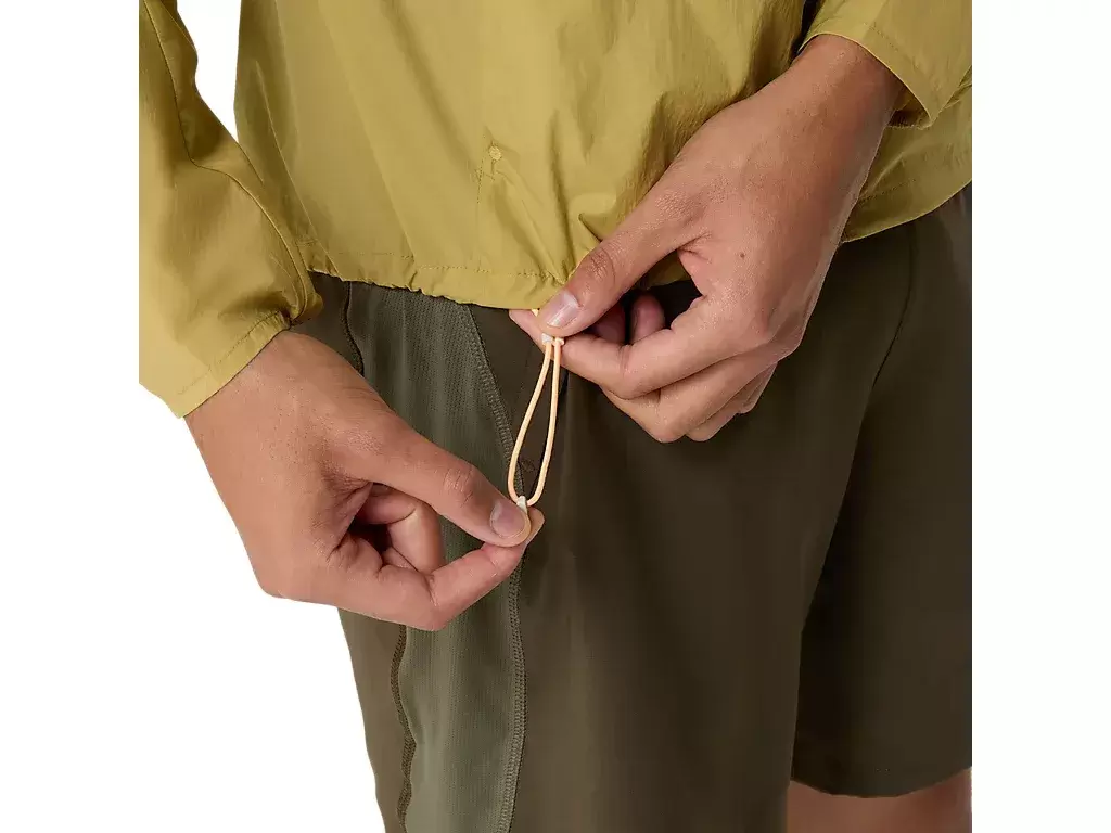 An der Kapuze befindet sich außerdem ein Kordelzug zur Saumverstellung, der dafür sorgt, dass sie bei Bewegung nicht verrutscht.
