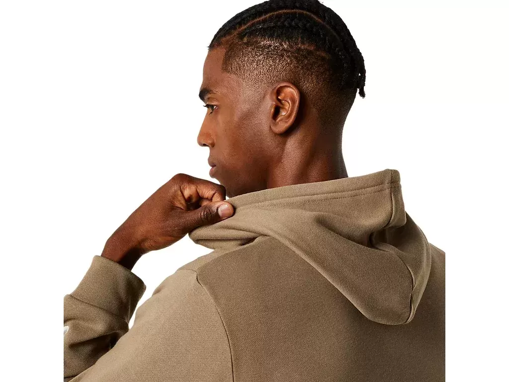 Der Hoodie verfügt über überschnittene Schultern für mehr Bewegungsfreiheit, eine Kapuze zum Schutz vor den Elementen und Seitentaschen zur Aufbewahrung persönlicher Gegenstände.