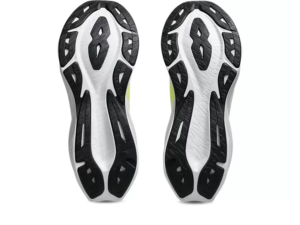 Die Zwischensohle und die Außensohle sind so konstruiert, dass sie den Fußballen und die Fersenauftrittszone gezielt ansprechen. Dies trägt zu einer höheren Energierückgabe und mehr Sprungkraft bei einer geringeren Stapelhöhe bei.