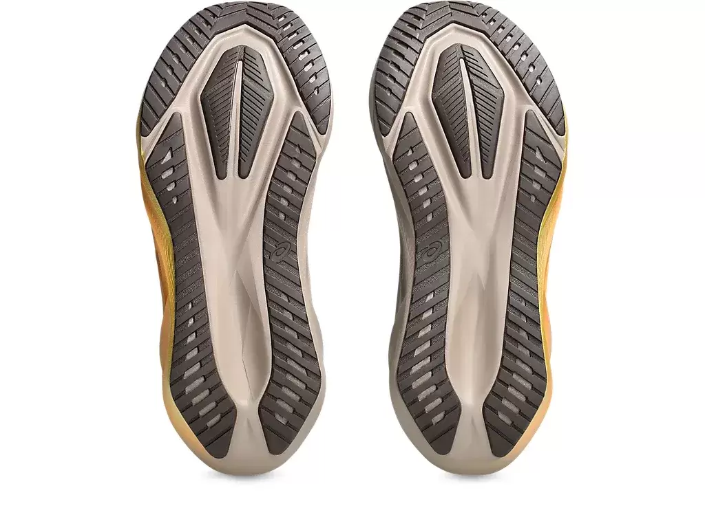Die Zwischen- und Außensohlengeometrie des NOVABLAST® 5 LUXE Laufschuhs sorgt für ein energiegeladenes Laufgefühl. Die Farbgebung ist von den Stunden des Tages inspiriert, in denen die Sonne auf- und untergeht.