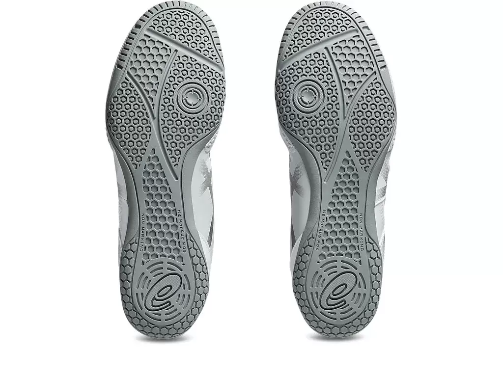 Der Schuh verbessert nicht nur die Traktion auf Mattenoberflächen, sondern verfügt auch über Flexionskerben in der Außensohle für mehr Flexibilität.