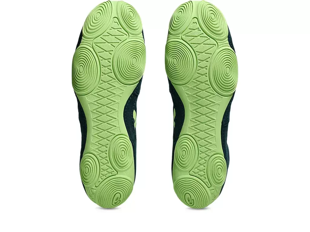 Das Design der Außensohle sorgt für bessere Traktion auf Mattenoberflächen und verfügt über ein einzigartiges Muster mit einer Reihe kreisförmiger Formen, die den Halt beim Aufsetzen des Fußes verbessern.