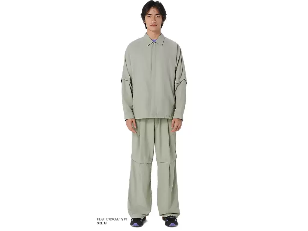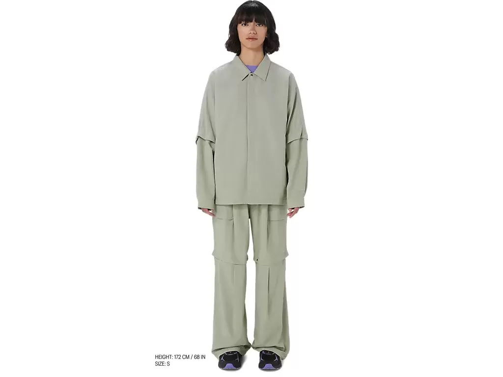 Durch Abnehmen der Knieteile und Anpassen des Kordelzugs am Saum können verschiedene Silhouetten erstellt werden.