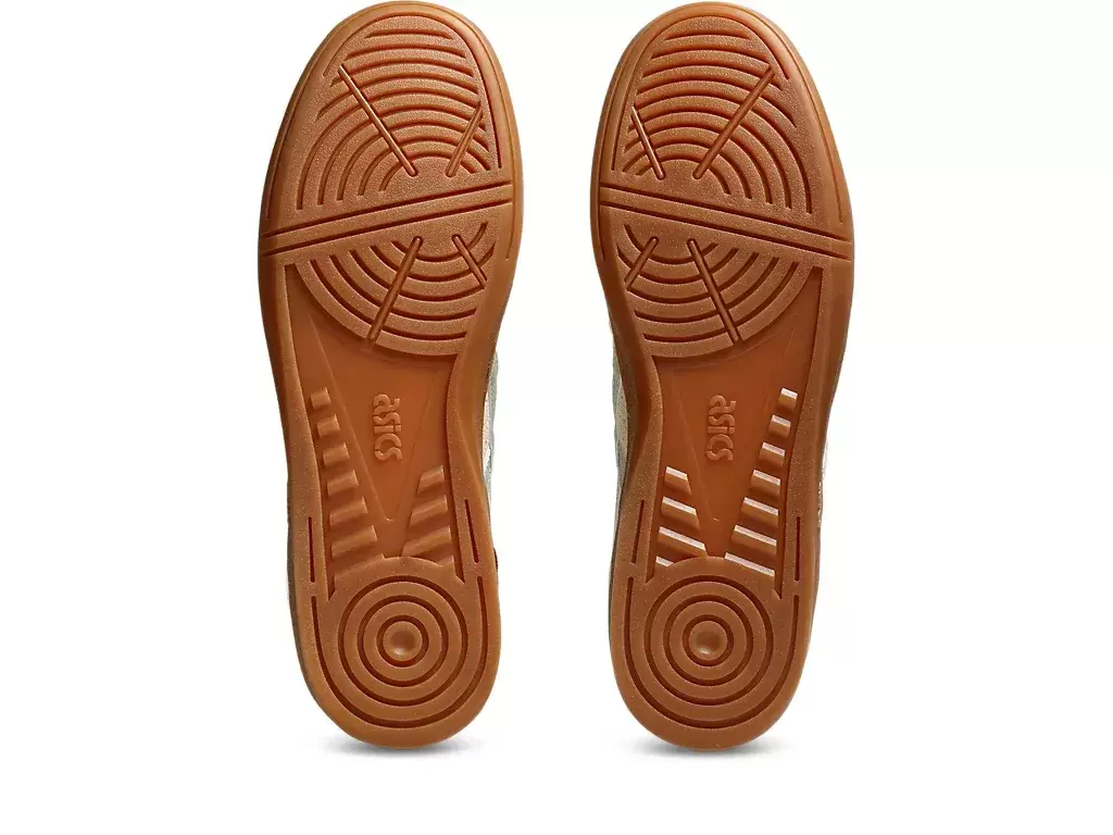 Die aktualisierte Konstruktion des Schuhs verfügt über Wildledereinsätze und Gummilaufsohlen. Der Fersenkeil verfügt außerdem über eine EVA-Dämpfung.