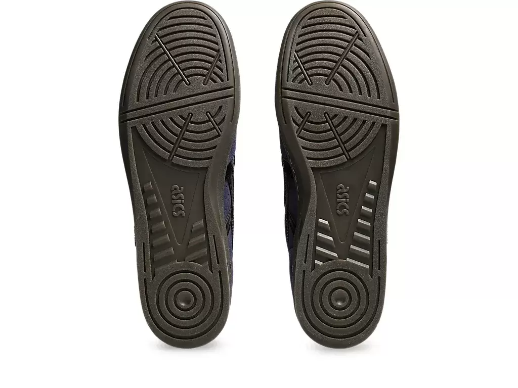 Die aktualisierte Konstruktion des Schuhs verfügt über Wildledereinsätze und Gummilaufsohlen. Der Fersenkeil verfügt außerdem über eine EVA-Dämpfung.