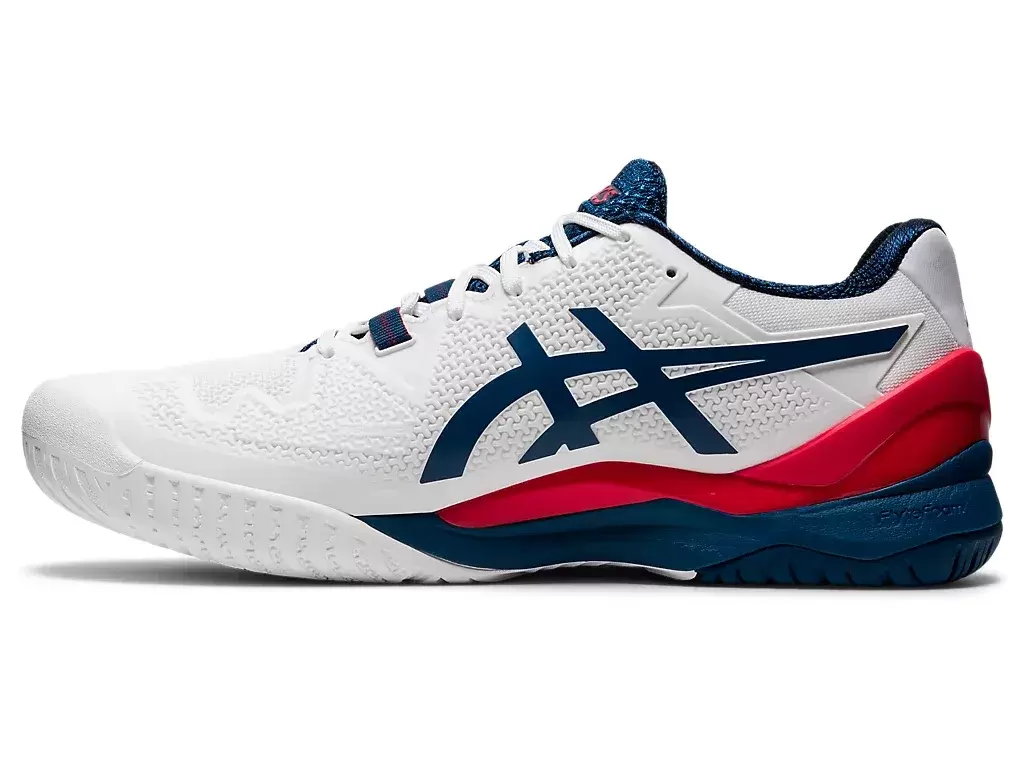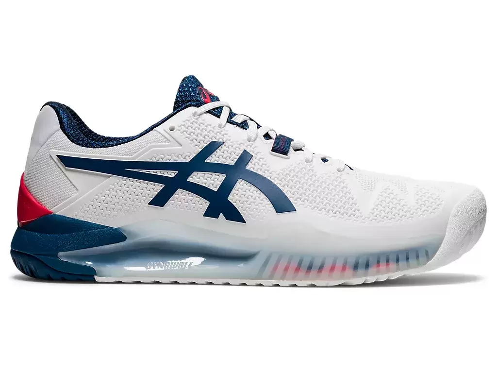 Der GEL-RESOLUTION® 8 (Wide) Tennisschuh ermöglicht einen reaktionsschnellen Schritt mit einem Gefühl, das dem Platz nahe kommt, und bietet gleichzeitig mehr Platz im Inneren für Personen mit breiteren Füßen. Das FLEXION FIT®-Obermaterial bietet formschlüssigen Halt durch die Integration der DYNAWALL™-Technologie, die zusätzliche Stabilität im Mittelfußbereich bei seitlichen Bewegungen und Abdeckung von Küste zu Küste bietet. Durch die Implementierung einer Drehmomentkontrollfunktion in der Fersenkappe ist dieser Schuh außerdem darauf ausgelegt, bei schnellen Übergängen ein sicheres Gefühl zu bewahren. Dieser Schuh ist für seine auf der GEL®-Technologie basierende Dämpfung im Vorder- und Rückfußbereich bekannt und reduziert die Stoßeinwirkung bei abrupten Stop-and-Go-Bewegungen auf dem Platz erheblich. Darüber hinaus verfügt das Modell über eine AHAR®-Mischung in der Außensohle, die zusammen mit dem PGUARD™-Zehenschutz die Traktion auf dem Platz erhöht und den Gesamtverschleiß reduziert. Der GEL-RESOLUTION® 8 (Wide) Tennisschuh sorgt für eine beschleunigte Reaktion mit einem natürlichen, bodennahen Gefühl und hilft Ihnen, Ihre Spiele selbstbewusst anzugehen.