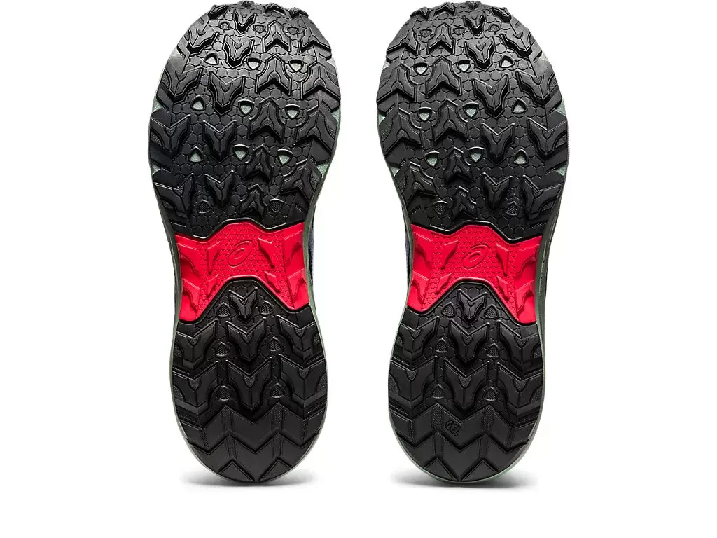 Die Außensohle verfügt über ein fortschrittliches Traktionsmuster, das für Straßen- und Trail-Oberflächen geeignet ist.