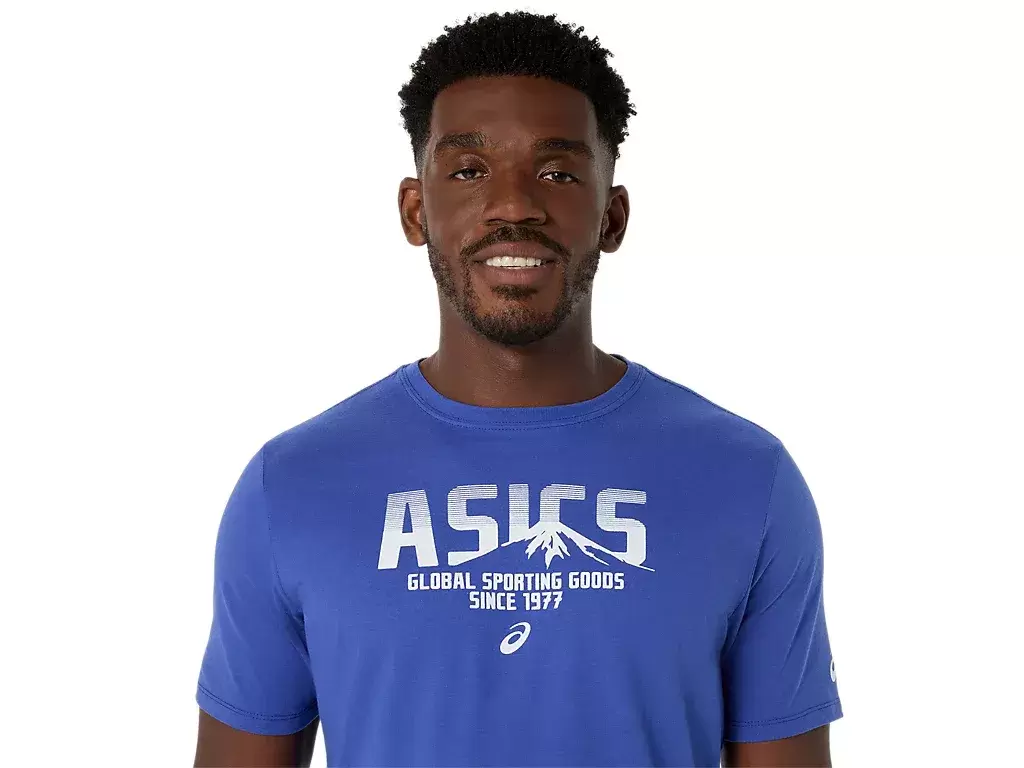 Dieses Oberteil aus Strickstoff eignet sich für eine Vielzahl von Trainingsprogrammen. Das T-Shirt trägt außerdem ein ASICS-Logo auf der Vorderseite sowie ein in das Design eingearbeitetes Berglogo.