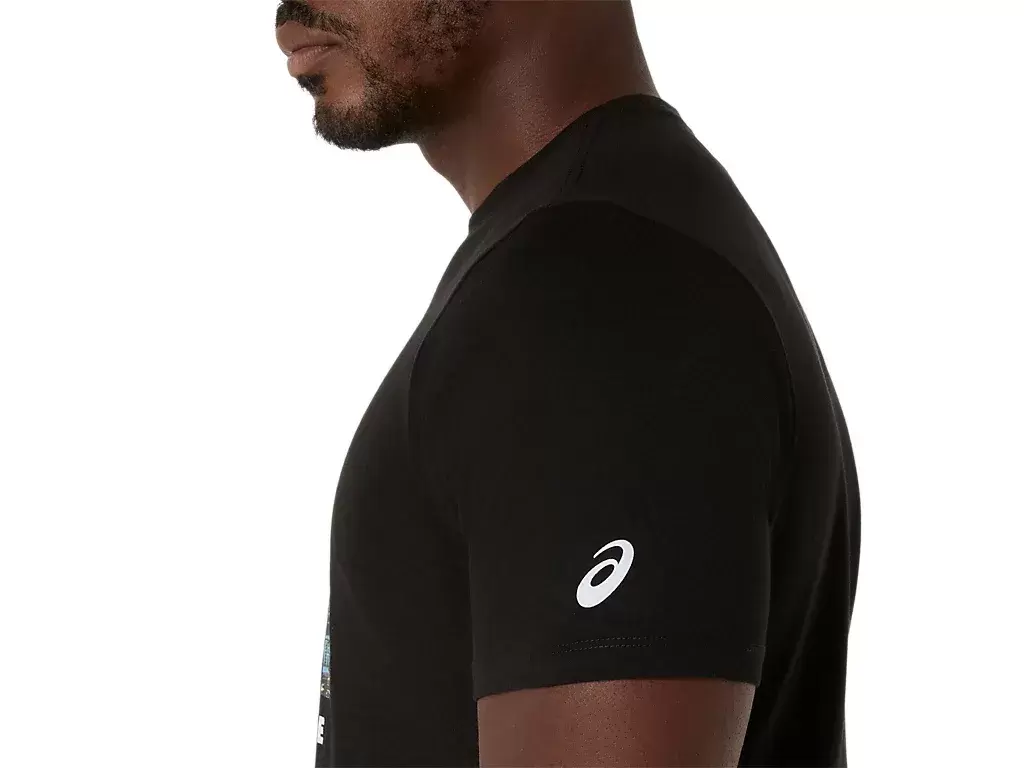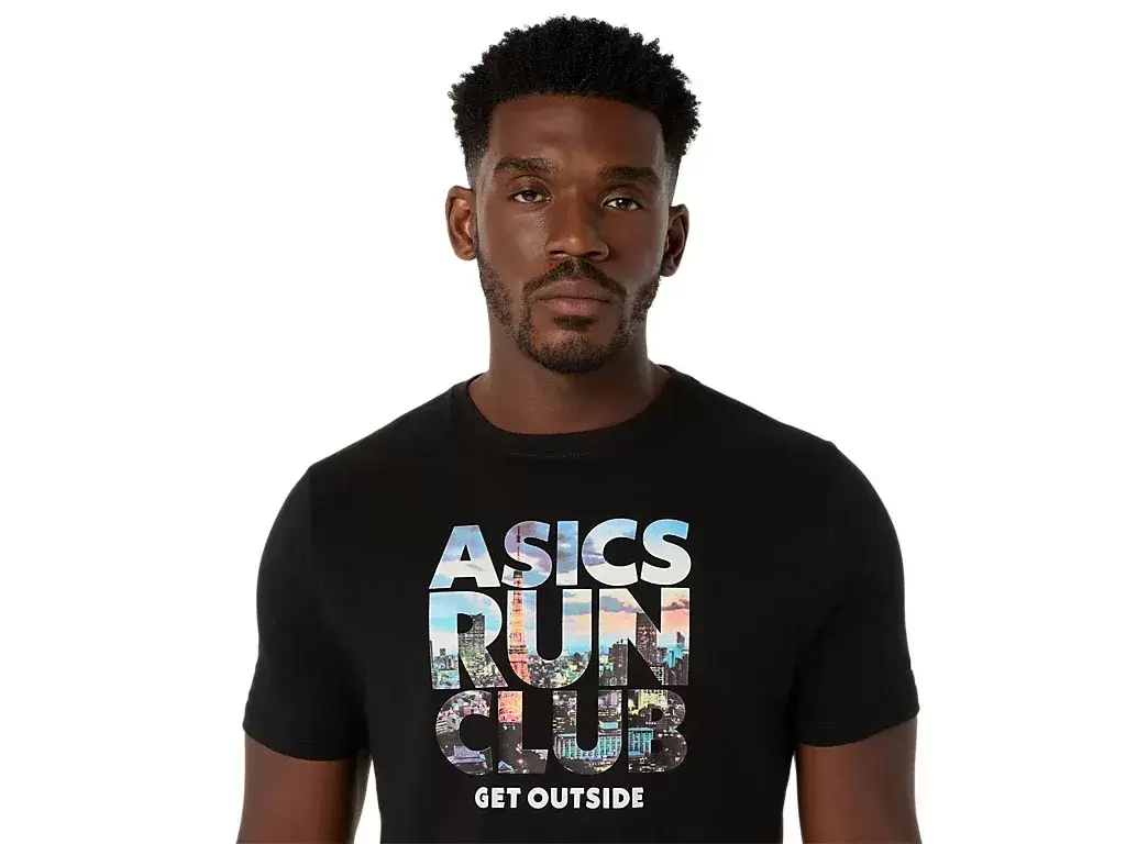 Dieses bequeme, kurzärmlige Strick-T-Shirt ist von der Stadt Tokio inspiriert. Die Grafik auf der Vorderseite zeigt den Satz „ASICS GLOBAL RUN CLUB“, der mit verschiedenen Tokio-Einflüssen im Schriftzug wiedergegeben wird.