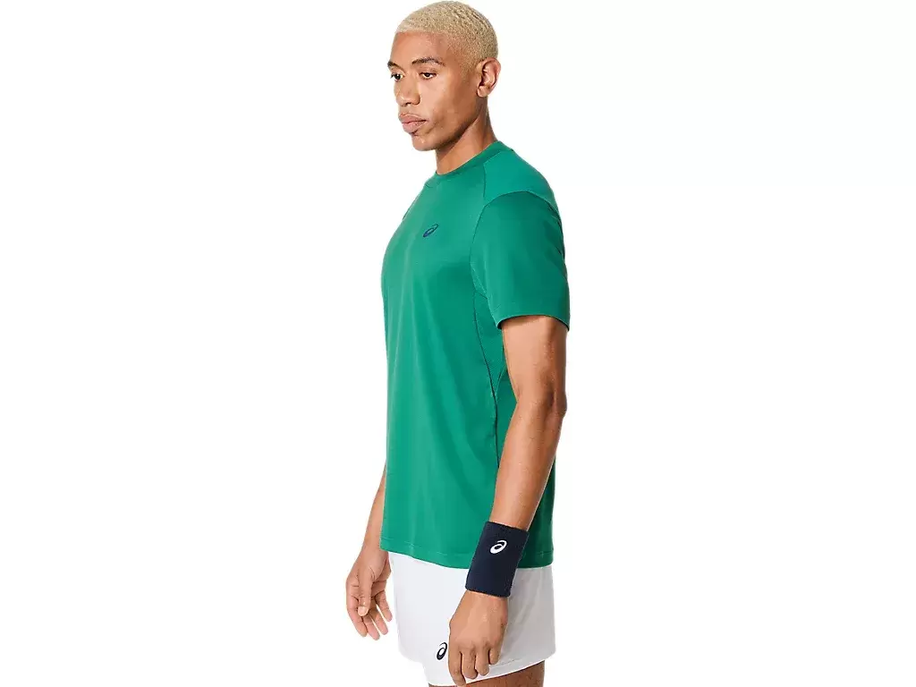 Das COURT SHORT SLEEVE TOP besticht durch sein klassisches Design, das für eine Vielzahl von Spielen und Trainingseinheiten zeitlos ist. Es besteht aus klassischem Tennismaterial und leitet Feuchtigkeit dank seines trockenen und weichen Gewebes ab, wodurch ein bequemes Oberteil entsteht.