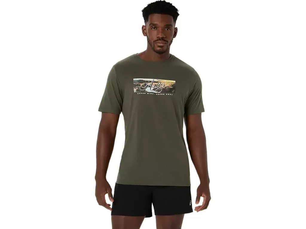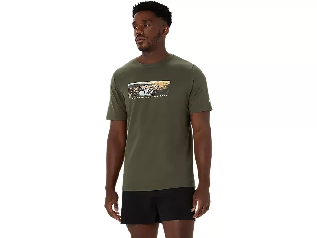 Dieses bequeme, kurzärmlige Strick-T-Shirt ist von der Natur in den Bergen inspiriert.