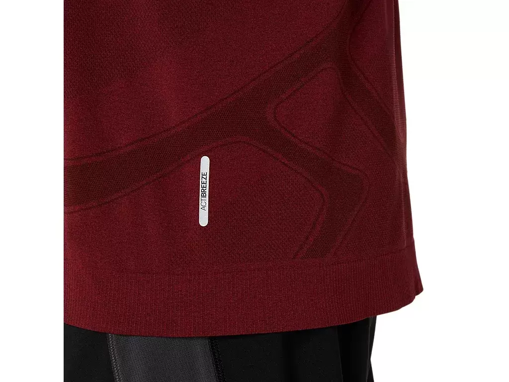 Dieses Oberteil verfügt über die ACTIBREEZE™-Technologie mit strategischen, körpergerechten Strickbelüftungszonen, die für gezielte Belüftung, verbesserte Atmungsaktivität und Komfort sorgen. Es ist mit Daumenlöchern an den Ärmeln ausgestattet, die für mehr Komfort bei Ihren täglichen Läufen sorgen.