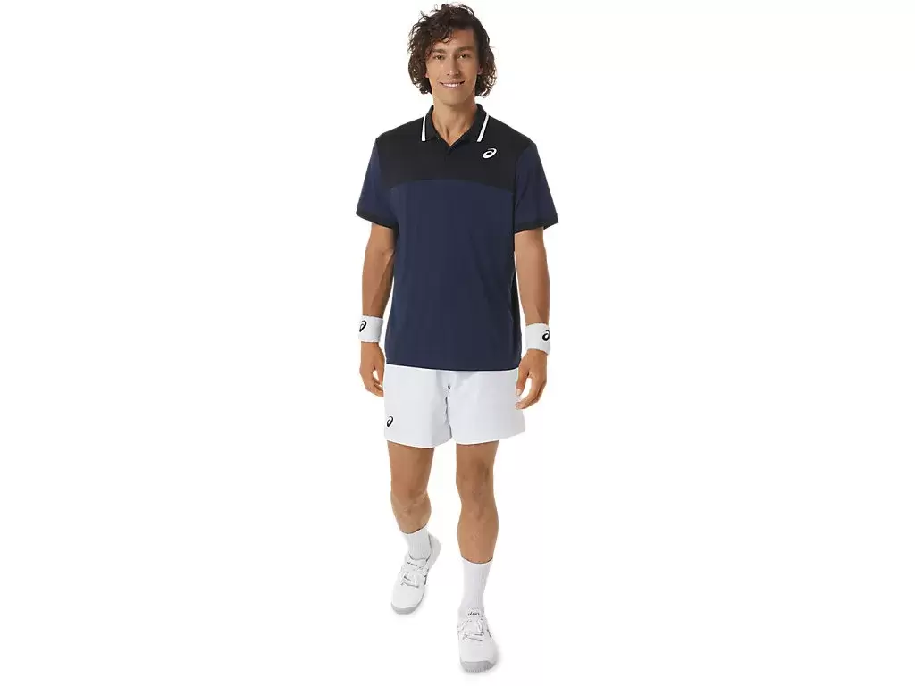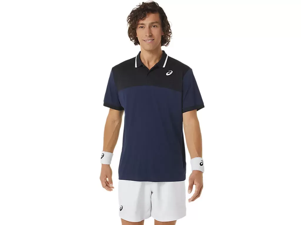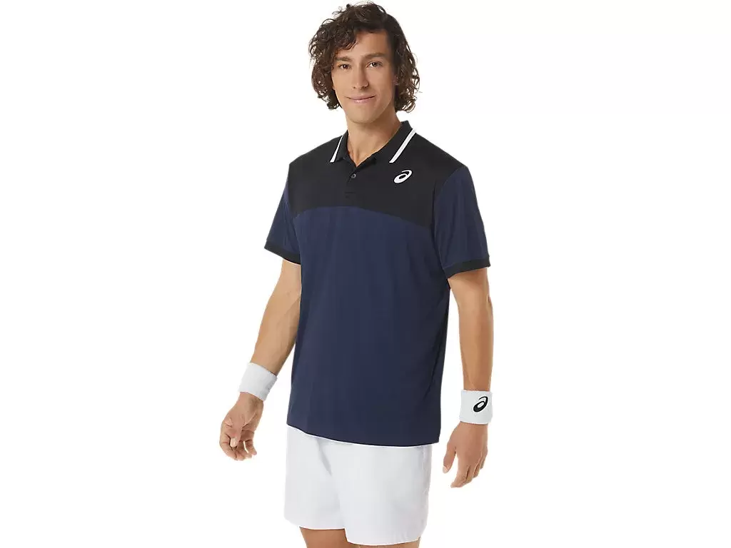 Das COURT POLO SHIRT ist mit einer lustigen Tennisplatzgrafik auf der Vorderseite gestaltet