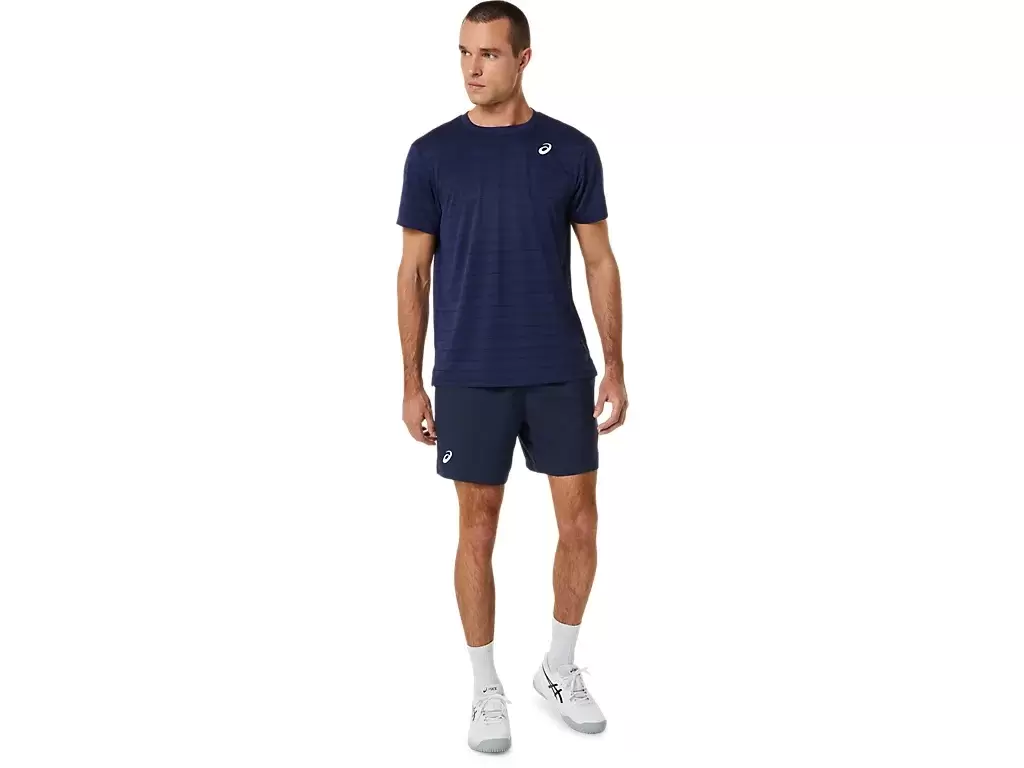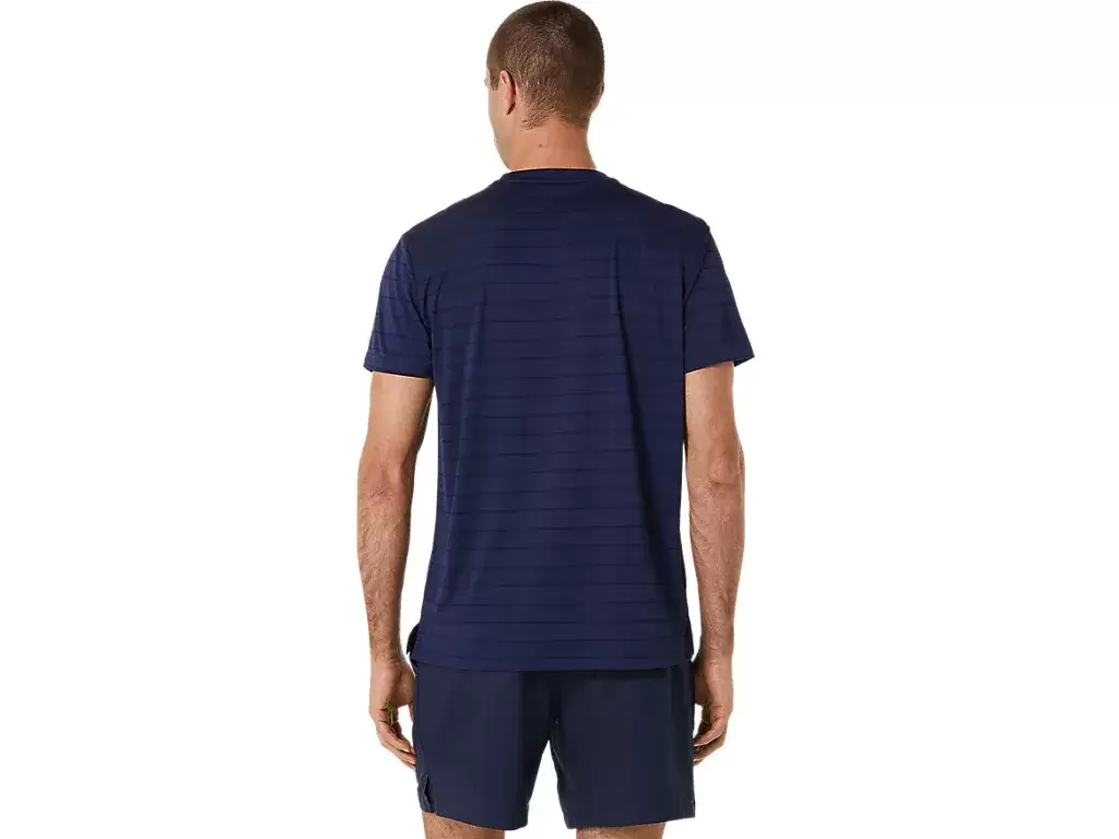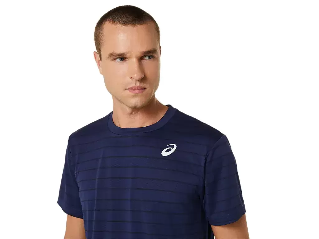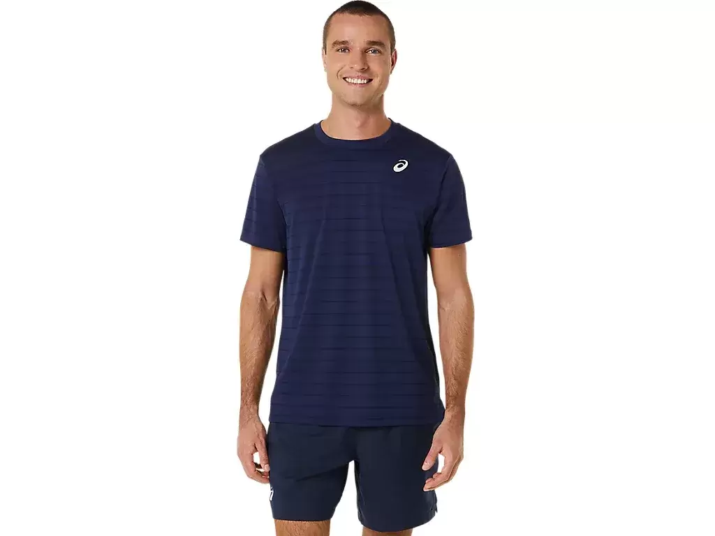 Das COURT STRIPE SHORT SLEEVE TOP ist mit einer lustigen Tennisplatzgrafik auf der Vorderseite gestaltet.