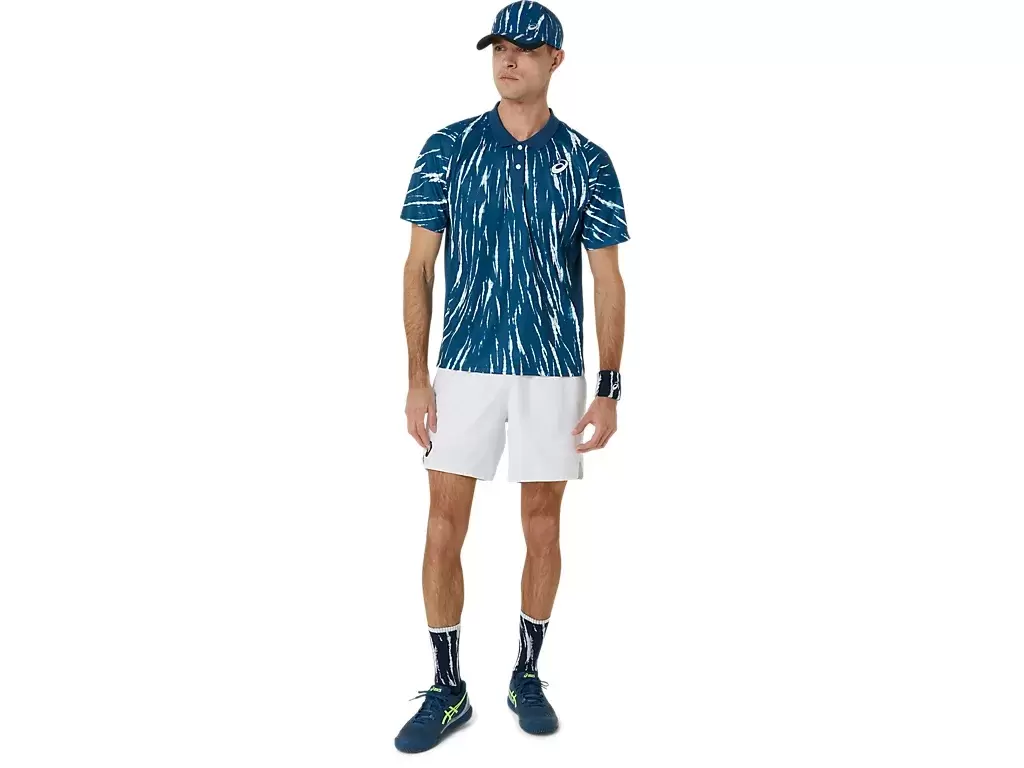 Das Oberteil besticht durch einen Allover-Grafikdruck, der von Shibori, einer traditionellen japanischen Färbetechnik, inspiriert ist.