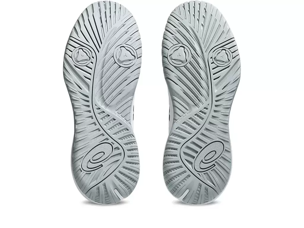 ASICS‘ hochabriebfestes Gummi im Fersenbereich ist etwa dreimal haltbarer als Standard-Außensohlengummis.