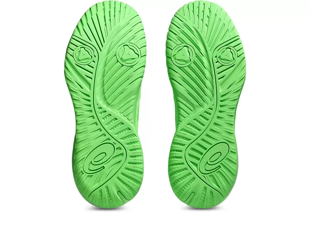 ASICS‘ hochabriebfestes Gummi im Fersenbereich ist etwa dreimal haltbarer als Standard-Außensohlengummis.