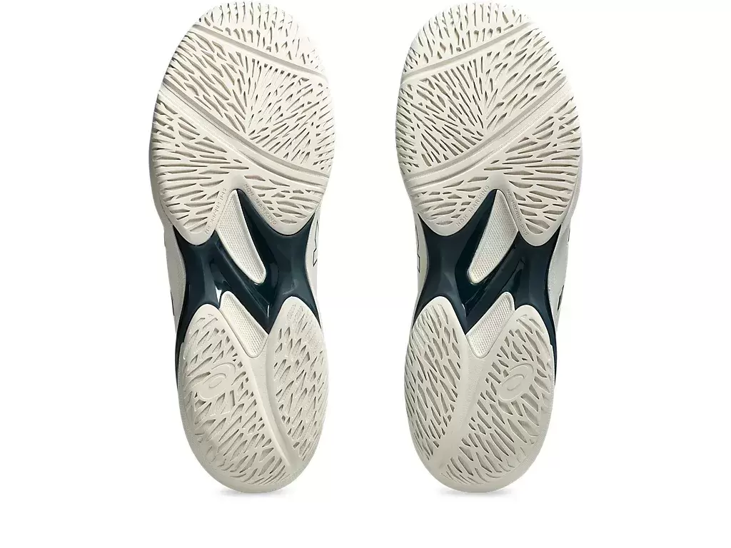 Das Außensohlendesign des Schuhs spiegelt das Außensohlendesign des SOLUTION SPEED™ FF wider. Es ist mit einem vertikalen Strichmuster versehen, um die Traktion auf dem Platz zu verbessern.