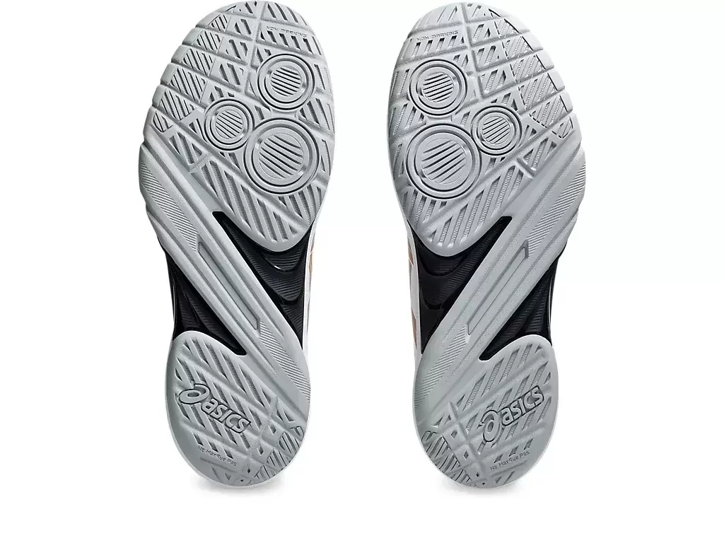 Die STABLETRUSS™-Technologie ist strategisch seitlich in der Mittelsohle positioniert, um mehr Stabilität im Rück- und Vorfußbereich zu gewährleisten. Gleichzeitig bietet die breitere Sohlenkonstruktion eine stabilere Basis für sichere Landungen.​