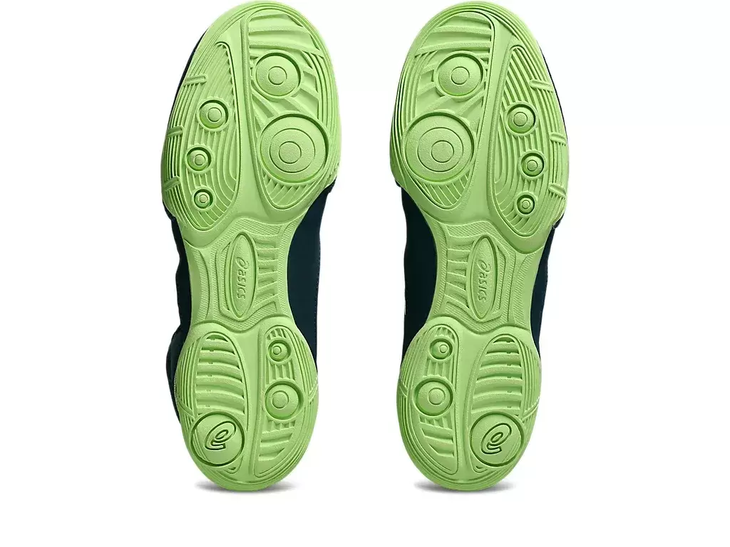 Das Design der Außensohle sorgt für bessere Traktion auf Mattenoberflächen und verfügt über ein einzigartiges Muster mit einer Reihe kreisförmiger Formen, die den Halt beim Aufsetzen des Fußes verbessern.